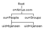 Figure 1.1 illustrates an example of a hierarchy of entries in an LDAP directory service.
