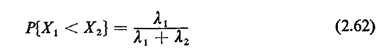We are often confronted with the following question: Given two independently operating Poisson processes with rate parameters 1 and 2 respectively, what is the probability that an arrival from process 1 (a "type 1" arrival) occurs before an arrival from process 2 (a "type 2" arrival)? To solve this problem, let the two arrival times of interest be denoted by X1 and X2, for processes 1 and 2, respectively. We want to compute P{X1 < X2}. Invoking our knowledge of Poisson processes, we know that the pdf's for X1 and X2 are negative exponentials with means 1-1 and 2-1, respectively. Thus, because of independence, the joint pdf is