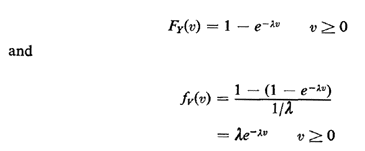 Suppose that police cars patrol in a completely random manner, with car passings occurring according to a Poisson process with mean rate passings per day. Then interpassing times are distributed as negative exponential random variables with mean 1/. Hence,