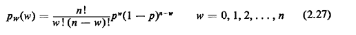 2.9.3 Binomial PMFA random variable W has a binomial pmf if ![]() Here W can be interpreted to be the number of successes in n independent Bernoulli trials, each having success probability p. We can see this by writing ![]() and the expanded form of the z-transform, (2.14), we obtain the binomial pmf shown in (2-27). By considering W to be the sum of n independent, identically distributed Bernoulli random variables, we obtain the mean and variance by inspection: ![]() In the police patrol example, with p = 0.25, the probability that the high-crime zone receives exactly w hours of patrol during an 8-hour tour of duty is ![]() |