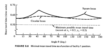 and 5.5, we have plotted in Figure 5.6 the mean travel time We may now be interested in how the optimal trajectory for facility 2