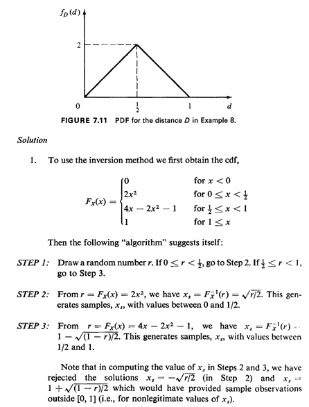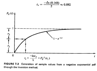 simulating negative exponential pdf's [NEUM 51], [FISH 78].