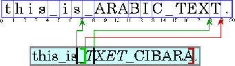 Even though they are part of an English sentence, the Arabic words are displayed in the Arabic script order, right-to-left. Because the italicized Arabic word is logically after the Arabic in plain text, it is visually to the left of the plain text.When a line with a mixture of left-to-right and right-to-left text is displayed, the base direction is significant. The base direction is the script order of the predominant writing system. For example, if the text is primarily English with some embedded Arabic, then the base direction is left-to-right. If the text is primarily Arabic with some embedded English or numbers, then the base direction is right-to-left.