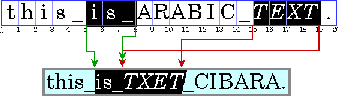 Note: In this and subsequent examples, Arabic and Hebrew text is represented by uppercase letters and spaces are represented by underscores. Each illustration contains two parts: a representation of the characters stored in memory (the characters in logic al order) followed by a representation of how those characters are displayed (the characters in visual order). The numbers below the character boxes indicate the insertion offsets.