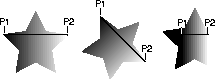 In the third star in Figure 2-8, both points lie within the shape. All of the points along the gradient line extending beyond P1 take the beginning color, and the points along the gradient line extending beyond P2 take the ending color.To fill a shape with a gradient of one color to another: