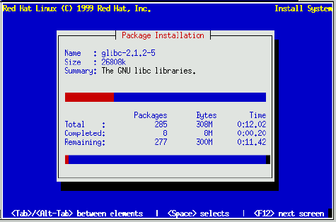 As each software package starts to load, the top part of the Package Installation screen displays its name, size, and a summary description of its function.