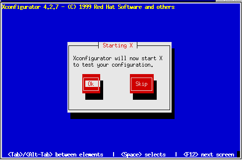 If you select Ok, you'll have the opportunity to go back enter different configuration values should there be an error. If no error is detected, X will start, and a small display window will ask you if you can read it clearly: using the mouse, click Yes within ten seconds. Then you are asked whether you wish for X to be started when the system boots.