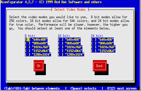 If you're doing a Workstation installation, or if you're doing a Custom installation and you have chosen to install the X Window System, the Xconfigurator utility starts and gives you the opportunity to configure the X server for your system. If you're doing a Server installation or you did not choose to install the X Window System, skip ahead to the section called Finishing Up.