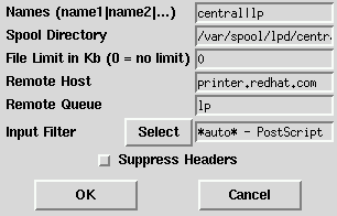 Spool Directory: This is the directory on the local machine where files are stored before printing occurs. Be careful to not have more than one printer queue use a given spool directory.