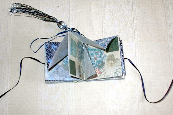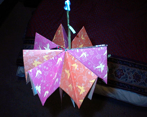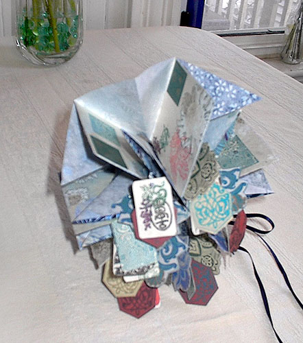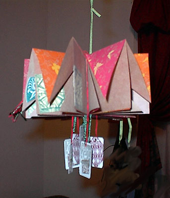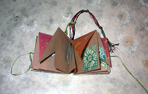 Here are some pictures of the second one of these books that I made. I used heavier origami paper this time. (Click on the pictures for a larger, if still fuzzy, image.) When I have more time, I may take pictures of all the "pages."