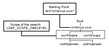 Figure 6.3 Example of a search with the scope LDAP_SCOPE_ONELEVEL