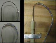 | Single entry tunneler [SET] for hemodialysis graft procedures Vascular tunnelers are used to create a path through subcutaneous tissue for the placement of grafts, particularly for hemodialysis access. Most current designs are rigid and require high forces and multiple incisions to complete even the most simple path geometries. This project investigated a three-stage design consisting of concentric, nested tubes: a straight stainless steel tube; a second pre-curved nitinol tube and a straight nitinol tube. By deploying the stages in this order the device is able to produce an approximately 180◦ looped path through tissue. An illuminated tip provides visual feedback of the tip trajectory under the skin. This has the potential to reduce tissue trauma and the risk of post-operative infection. Team: Madalyn S. Berns, Elizabeth Y. Tsai, Jesse Austin-Breneman, James C. Schulmeister, Edward Sung, Conor J. Walsh, Charles K. Ozaki (BWH) |