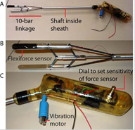 | Pressure sensing laparoscopic grasper Most laparoscopic graspers provide minimal tactile feedback and create pinch points in the grasped region, often resulting in either excessive grasp forces or tissue slippage. Tissue trauma can occur. This research presents a proof-of-concept for a parallel motion, pressure sensing laparoscopic grasper which eliminates pinch points in the grasped region and applies a uniform pressure across the grasper jaws. A low cost pressure sensor provides feedback to the handle when a preset threshold force is applied. Testing results from a 2x scale prototype were close to analytical predictions and allowed grasper pressure to be monitored. Team: Grace S. L. Teo, Mattias S. Flander, Toomas R. Sepp, Manuel Corral, Juan D. Diaz, Alexander Slocum, Khashayar Vakili (Children’s) |