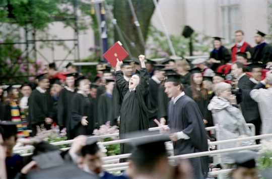 | An MIT graduate shows his elation after receiving his diploma. | |