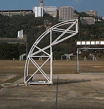 What are some structural systems that you can see around you as you sit? How could they fail? How would one of Marcel Breuer's stainless steel tube chairs be discussed in relation to the issues of strength and stability? How would you describe the working of the support systems of your body in relation to the issues of strength and stability? How would you describe the basketball backboard and supporting structure shown in terms of strength and stability?