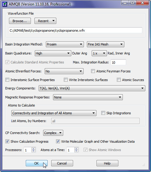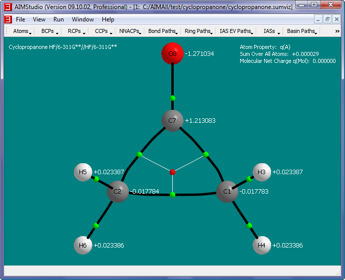 - In the AIMQB dialog, click the "OK" button to start an AIMAll numerical analysis of cyclopropanone.wfn
