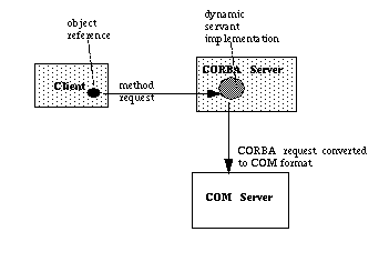 The dynamic servant is implemented to convert the CORBA client request