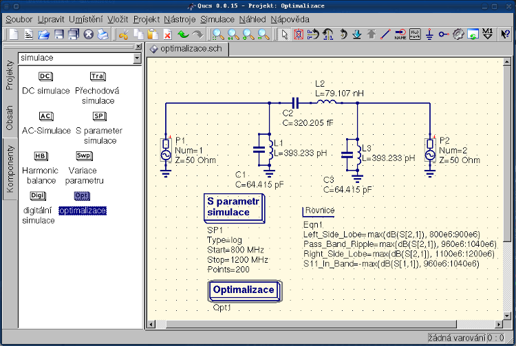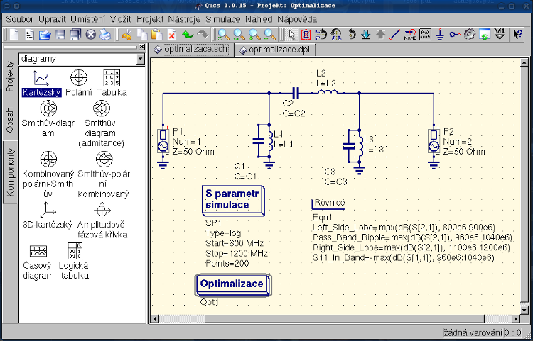Pro optimalizaci obvodu používá Qucs utilitku ASCO