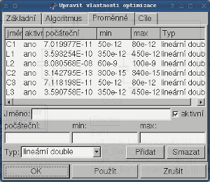 Obrázek 4 - Optimalizace - dialoh, možnosti proměnných.