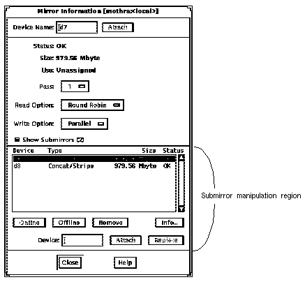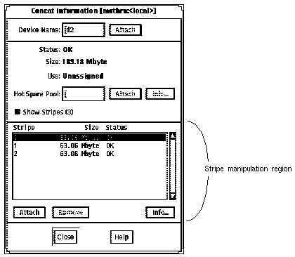 DiskSuite Tool is a graphical user interface for setting up and administering a DiskSuite configuration. DiskSuite Tool provides a graphical view of DiskSuite objects - metadevices, hot spares, and disk slices. DiskSuite Tool uses drag and drop manipulation of DiskSuite objects, enabling you to quickly configure your disks or change an existing configuration. It also provides performance information on metadevices and physical devices.
