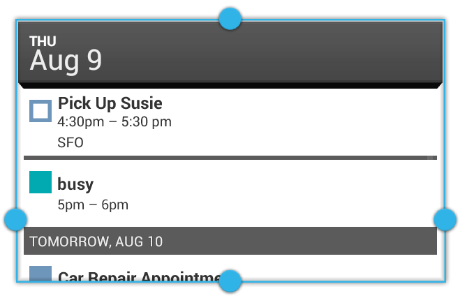 • For resizable widgets, plan how the content for your widget should adapt to different sizes.