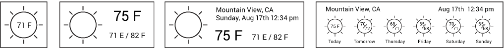 In this simple example the user can horizontally resize a weather widget in 4 steps and expose richer information about the weather at the current location as the widget grows.