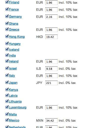 You can set and adjust your prices at any time, in any available currency. Your prices in available currencies are independent, so you can adjust one price without affecting others. This gives you the ability to run short-term promotions and discounts in specific countries and more easily manage shifts in exchange rates.