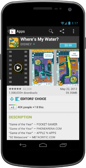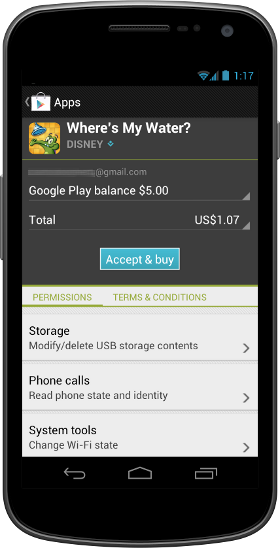 Google Play makes it fast and easy for your customers to buy your products, whether from a phone, a tablet, or a desktop computer. When users find an app or game that they want to buy, they can purchase it in as few as two steps—one to initiate the purchase and another to accept purchase details and permissions and complete the transaction.
