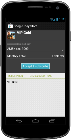 Google Play's convenient purchase experience is the same familiar process for all products everywhere across Google Play—apps, games, in-app products and subscriptions, and other digital content.