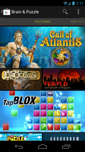 The Featured collections highlight the latest and greatest app and game titles available for Android. Category featuring highlights the best and most popular apps in the top categories. Staff Picks collects all recently featured apps and games on Google Play. To better reach tablet users, there’s a special Staff Picks collection that highlights the best apps for Android tablets.