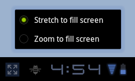 In general, large screen devices running Android 3.2 or higher allow users to enable screen compatibility mode when the application does not explicitly declare that it supports large screens in the manifest file. When this is the case, an icon (with outward-pointing arrows) appears next to the clock in the system bar, which allows the user to toggle screen compatibility mode on and off (figure 3). An application can also explicitly declare that it does not support large screens such that screen compatibility mode is always enabled and the user cannot disable it. (How to declare your application's support for large screens is discussed in the following sections.)