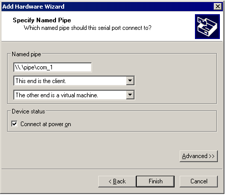 For a serial pipe on a GSX Server for Windows host, the pipe name must follow the form \\.\pipe\<namedpipe> that is, it must begin with \\.\pipe\.
