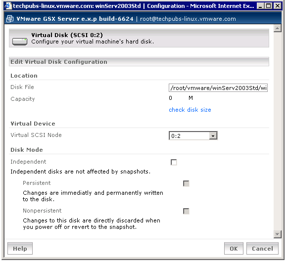 6. Decide if you want to make this virtual disk an independent disk. Under Disk Mode, check Independent, then check Persistent or Nonpersistent.