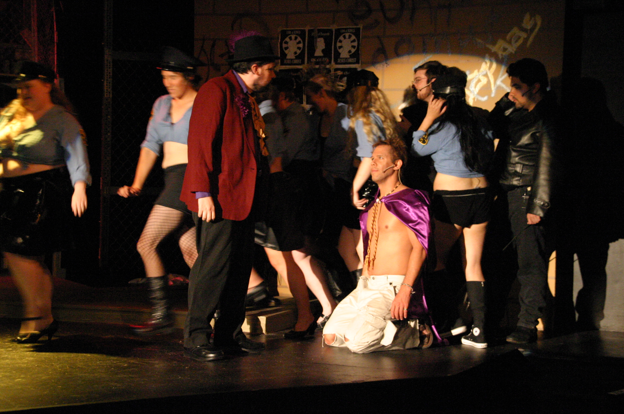 Heaven on Their Minds - (balcony) Brad Smith, Rich Fulkerson (foreground) Kevin Smith, Carrie Lee '10, Sallie Guthrie '13, JB Parkes '13, Helen O'Keefe '09, Betsy Flowers '12, Sally Peach '09, Luis Loya '06, Josh Marcus, Hubert Hwang '07, Matt Peairs '09 (credit: Jax Kirtley'96) Everything's Allright - (foreground) Carrie Lee '10, Kevin Brown (background) Rachel Bowens-Rubin '11, Sally Peach '09, Rich Fulkerson, JB Parkes '13, Helen O'Keefe '09, Emily Rosser '12, Dawn Erickson '07, Sally Guthrie '13 (credit: Jax Kirtley'96) Simon Zealotes - (balcony) Betsy Flowers '12 (foreground) - Dawn Erickson '07, Tori Root, Daniel Ruiz (background) Luis Loya '06, Emily Rosser '12, Sally Guthrie '13, JB Parkes '13 Josh Marcus, Jasmine Florentine '11, Helen O'Keefe '09, Rachel Bowens-Rubin '11, Sally Peach '09 (credit: Jax Kirtley'96) The Temple - Helen O'Keefe '09, Emily Rosser '12, Kevin Brown, Rachel Bowens-Rubin '11, Carrie Lee '10, Tori Root (credit: Jax Kirtley'96) Damned for All Time - (foreground) Hubert Hwang '07, Rich Fulkerson, Matt Peairs '09 (background) Daniel Ruiz, Josh Marcus (credit: Jax Kirtley'96) Gethsemene (I Only Want to Say) - (foreground) Kevin Brown (background) Helen O'Keefe '09 (credit: Jax Kirtley'96) The Arrest - (balcony) Matt Peairs '09, Hubert Hwang '07, Rich Fulkerson (foreground) - Dawn Erickson '07, Betsy Flowers '12, Helen O'Keefe '09, Rachel Bowens-Rubin '11, Sally Guthrie '13, Luis Loya '06, Kevin Brown, Josh Marcus, Emily Rosser '12, JB Parkes '13, Tori Root, Sally Peach '09, Jasmine Florentine '11 (credit: Jax Kirtley'96) Pilate and Christ - (foreground) Brad Smith, Kevin Brown (background) Josh Marcus, Tori Root, Sally Guthrie '13, Emily Rosser '12, Betsy Flowers '12 (credit: Jax Kirtley'96) Trial Before Pilate (Including the 39 Lashes) - (foreground) Brad Smith, Kevin Brown (background) Emily Rosser '12, Greg Lohman PhD '07, Carrle Lee '10, Josh Marcus, JB Parkes '13, Jasmine Florentine '11, Matt Peairs '09 (credit: Jax Kirtley'96) The Crucifixion - Betsy Flowers '12, Helen O'Keefe '09, Sally Peach '09, Tori Root, JB Parkes '13, Carrie Lee '10, Kevin Brown, Sally Guthrie '13, Jasmine Florentine '11, Daniel Ruiz, Luis Loya '06, Dawn Erickson '07, Greg Lohman PhD '07, Emily Rosser '12 (credit: Jax Kirtley'96) |
