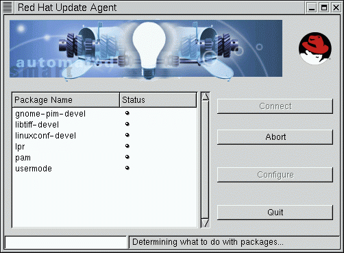 Next, you'll see that the packages which are being downloaded will be shown in the main Update Agent screen, under Package Name and a small status icon will appear next to each package in the Status column, similar to Figure 11-7.