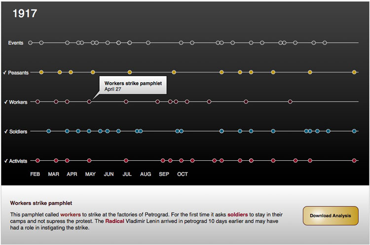 A timeline that reveals relationships and connections between citizen stakeholders in pre-revolutionary Russia