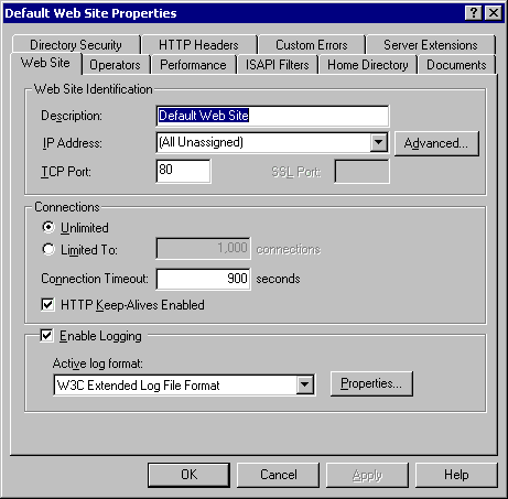 Make sure that both the Date and Time check boxes are checked. To simplify my installations, I check every Extended Property checkbox. There are some specific items that could probably not be included (such as Server Port for a port 80 only server), but additional items typically don't add much to the file size of the log files.