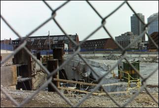 Looking to the south from the path between Haymarket and the North End. A tunnel bends off to the left towards Logan Airport.