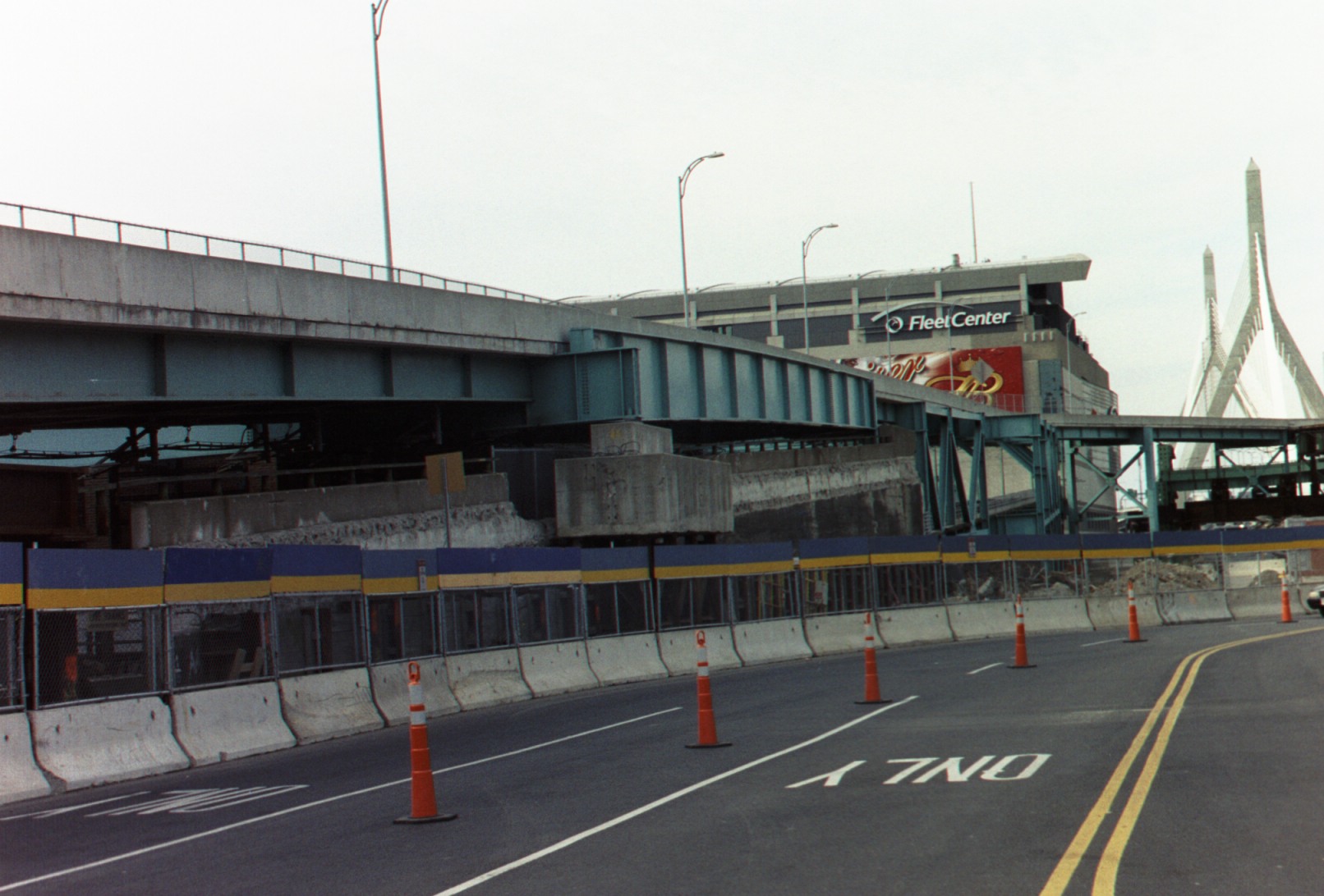 The last off-ramp from the elevated Central Artery, to Haymarket Square. This ramp was actually built in coordination with the T, which is still using it as a temporary incline for the Green Line to get to North Station.