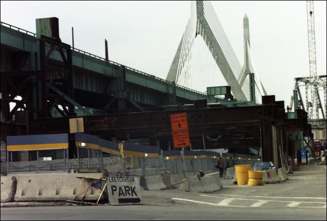 Both the old bridge over the Charles and the new Leonard Zakim bridge can be seen here.