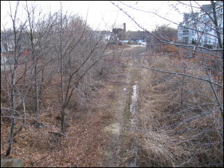 Where the abandoned Lexington Branch separates from the main line to Woburn and Lowell.