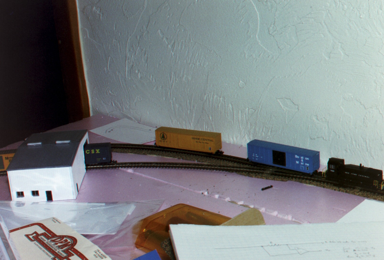 One of the MEC boxcars and the CSX boxcar are left at the building; the engine returns to pick up the other MEC boxcar.