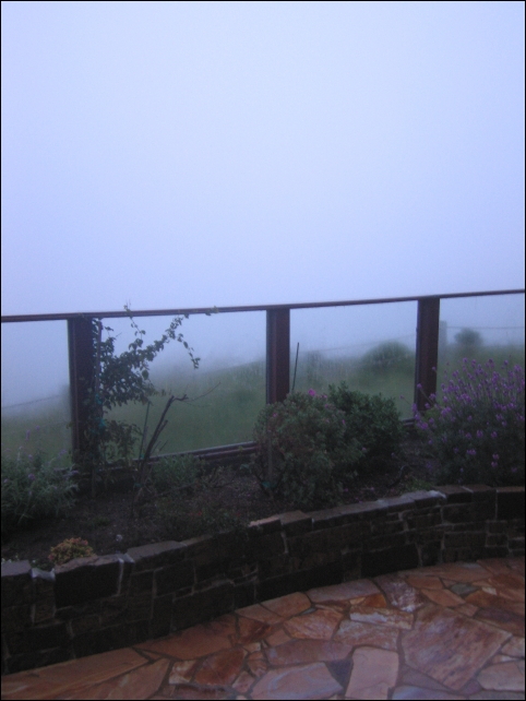 Fog out the back door of the house. When it's clear, you can see the ocean.