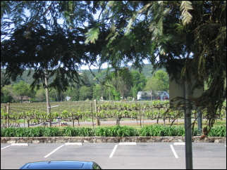 In between the parking lot and the main road are acres of grapes.