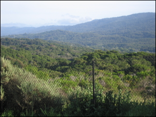 Looking up into the mountains along the Peninsula from a rest stop along I-280.