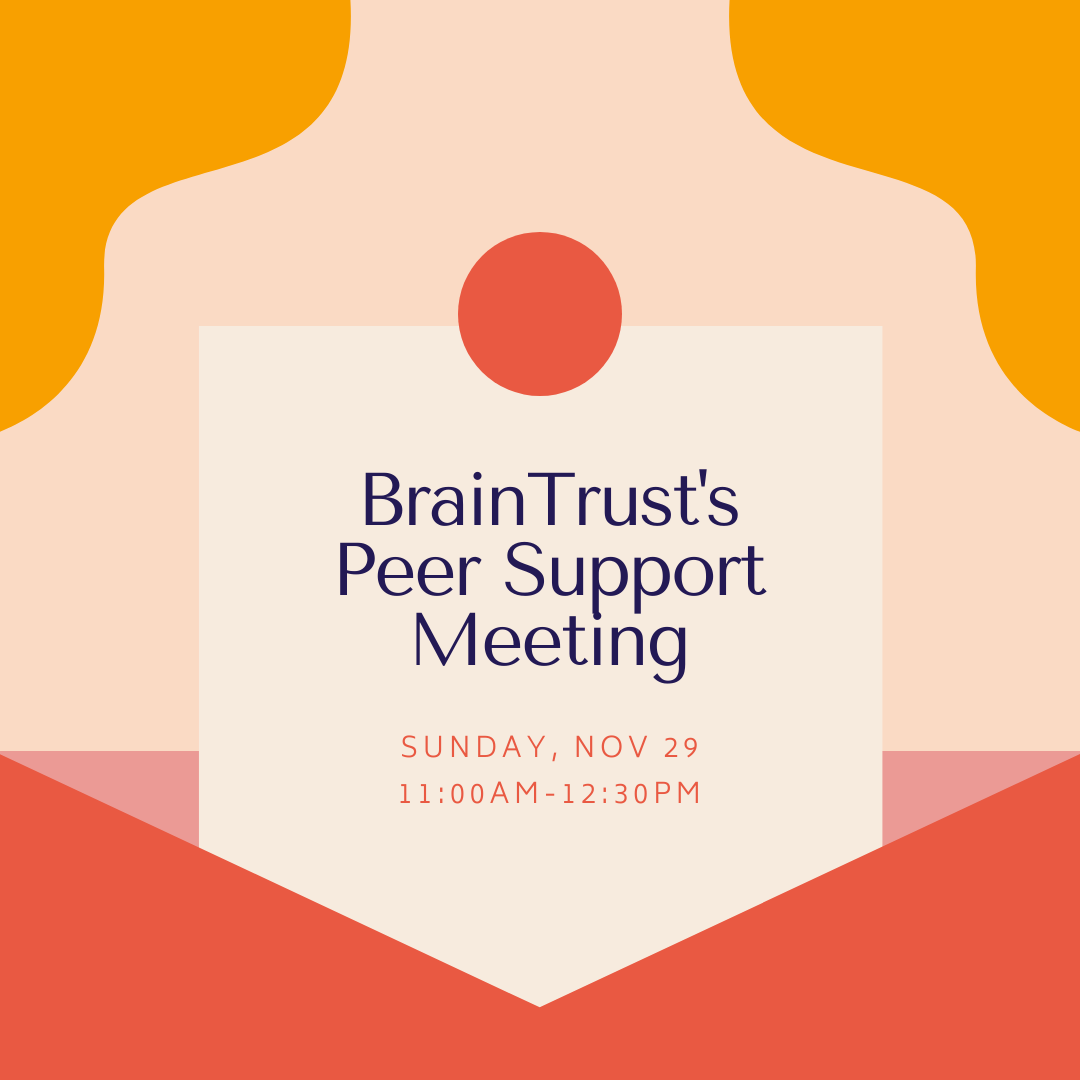 Our next peer support meeting will be Sunday, November 29th from 11:00am-12:30pm!