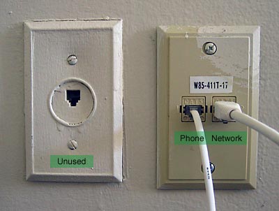 Each apartment has one face-plate with two RJ-45 connectors (UTP). The left-hand socket is used for MIT's telephone connection (the RJ-11 phone connector can be plugged into the RJ-45 socket), while the right-hand socket provides connection to MITnet. Most apartments have a second face-place with a single RJ-11 connector (phone), which is unused.