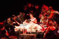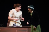 The Landlady (Brett Jordan) and Spinster (Melanie Abrams '17) examine a telegram meant for Mr. Witherspoon. (credit: Staly Chin '15) Rita LaPorta (Tobi Amos '15) explains the circumstances of her lover Tony's death to her cousin, Vinnie DiRuzzio (Josh Scherrer '18), in "Rita's Confession". (credit: Staly Chin '15) Annabel Glick (Carrie Fowle '18) takes detailed notes on Harry's activities with his uncle. (credit: Staly Chin '15) The Emcee (Matt Peairs G) extols the wonders of "Monte Carlo". (credit: Alexander C. Bost) Annabel, in a moment of quiet reflection. (credit: Staly Chin '15) The Nun (Cole Houston '15) mistakes a Leper (David Favela '18) for Harry's uncle. (credit: Staly Chin '15) Rita holds Harry at gunpoint as she takes the body. (credit: Alexander C. Bost) Annabel, Harry, and the cast assure that, after all, it's still "Good to be Alive". (credit: Alexander C. Bost) |