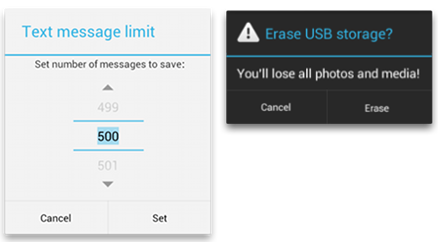 To add action buttons like those in figure 2, call the setPositiveButton() and setNegativeButton() methods: