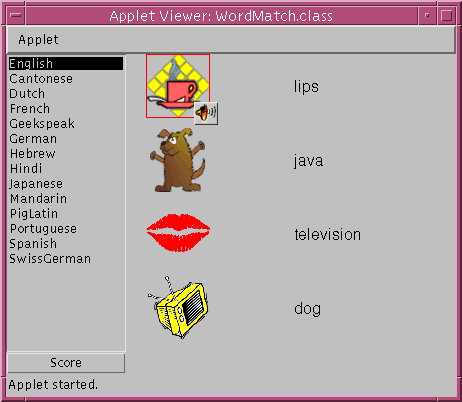 Common Problems with Global Programs introduced the WordMatch applet by Pat Chan. The page then went on to discuss the most common problems that programmers encounter when attempting to internationalize a program such as WordMatch.